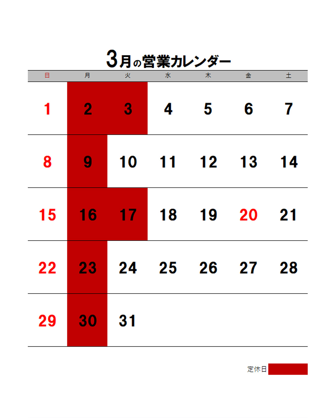 日頃はアルファ ロメオ浜松をご愛顧いただき誠にありがとうございます。2月・3月の営業日については以下とさせていただきます。